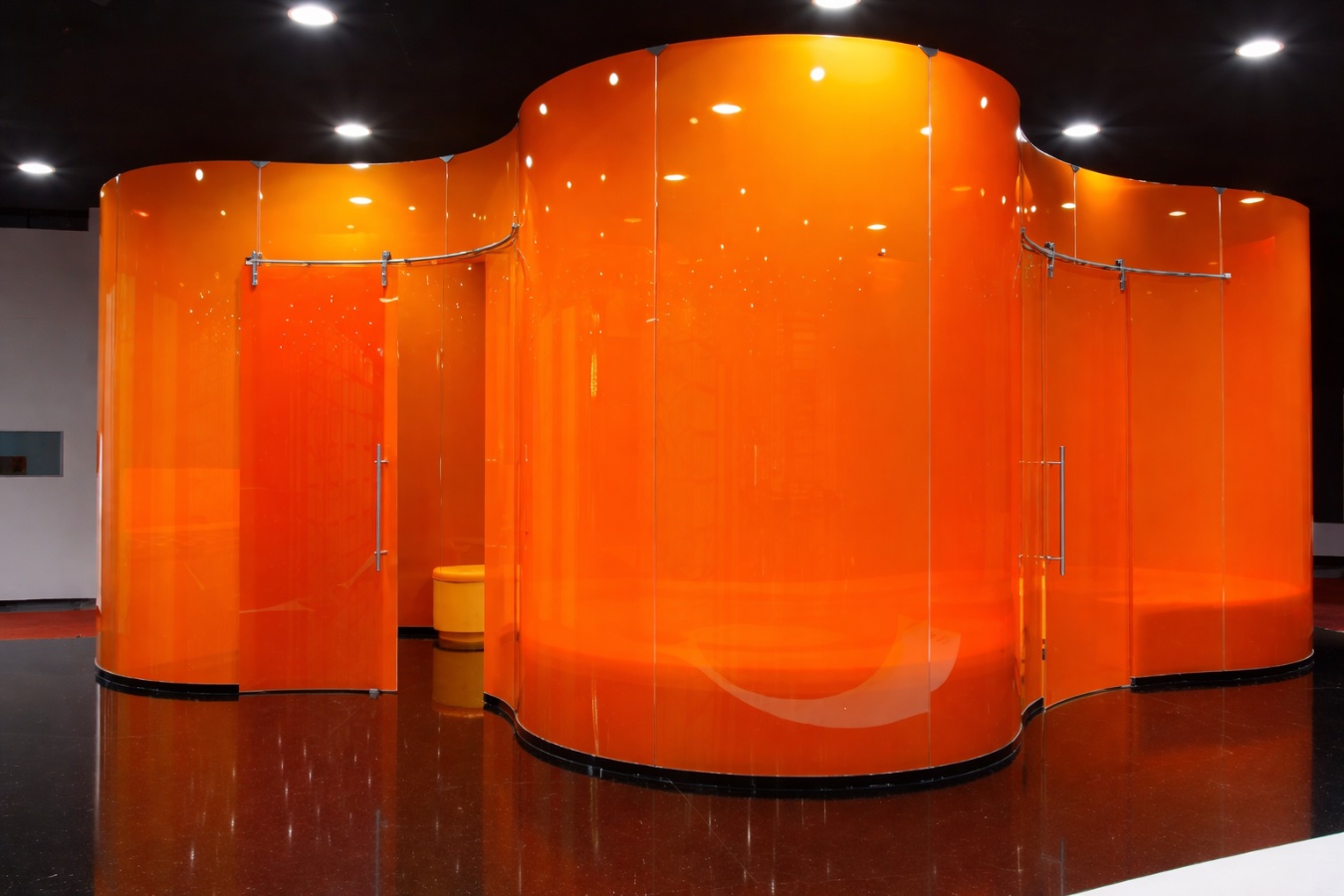 Перегородки виконуються з високоміцного загартованого скла, що гарантує надійність та безпеку. Ризики розбити скло мінімальні. І навіть якщо таке станеться, матеріал розсипається у дрібну крихту без гострих граней, тому ніколи не поранить людину.